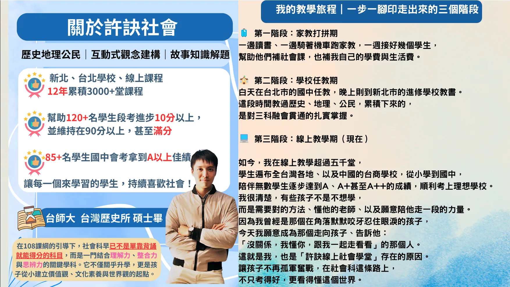 這是一堂為國中生與家長設計的社會科示範直播課程